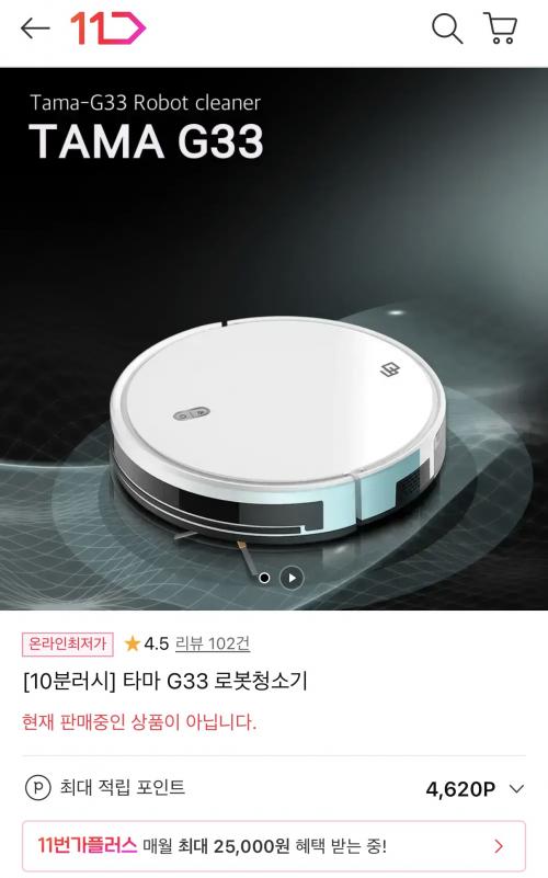 [11번가] (10분러시) 타마 G33 로봇청소기 (89,000원/무료) > 국내핫딜