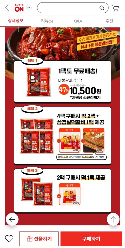 2팩 구매 시 떡 1팩, 4팩 구매 시 떡 2팩 + 삼겹살 떡갈비까지