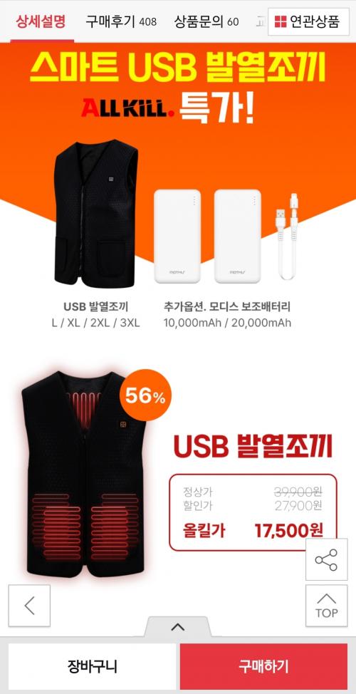[옥션] 남여공용 발열조끼 (17,500원/무배) > 국내핫딜
