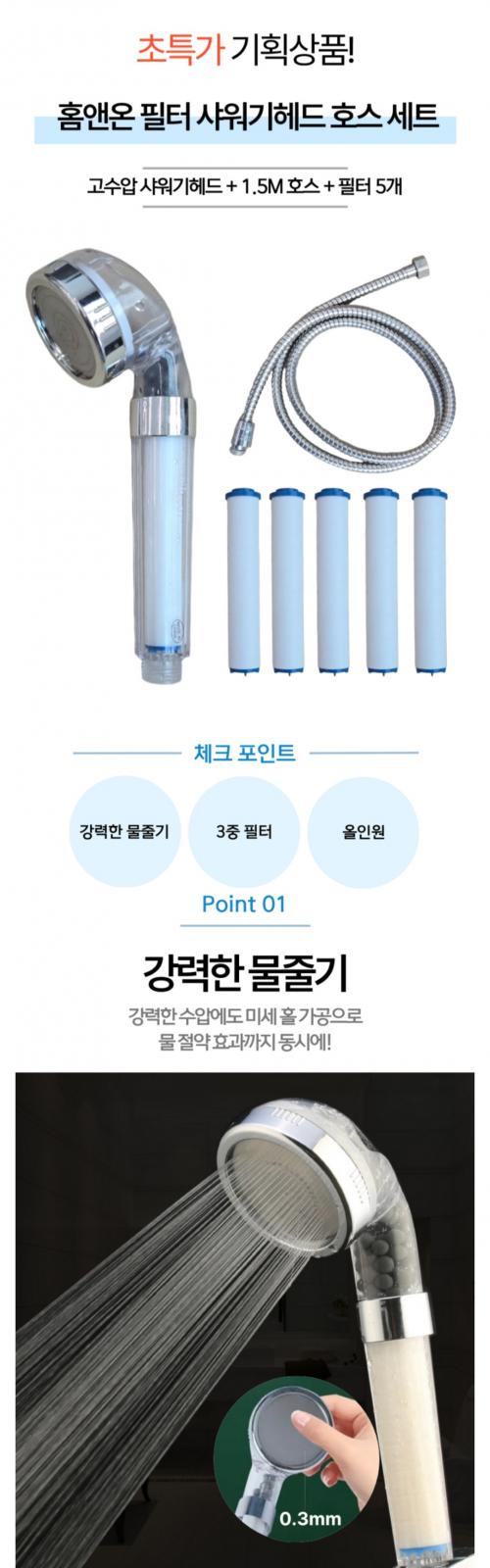 고수압 샤워기헤드 + 1.5M 호스 + 필터 5개 구성에 5,800원이면 가격 좋네요