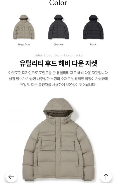 듀얼 덕 다운을 사용해서 보온성이 뛰어나다고 하네요.