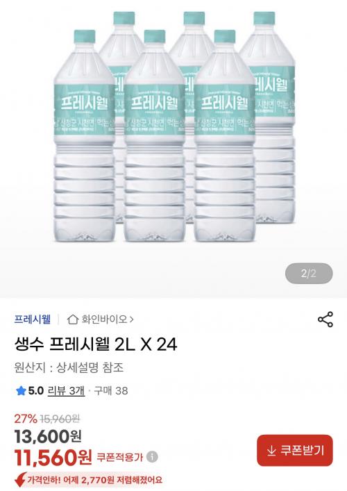 [지마켓] 프레시웰 2L X 24개 (11,560원/무료) > 국내핫딜