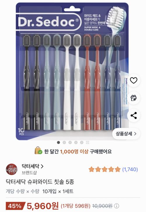 [쿠팡] 닥터세닥 와이드칫솔 10개 5,960원 (무료)