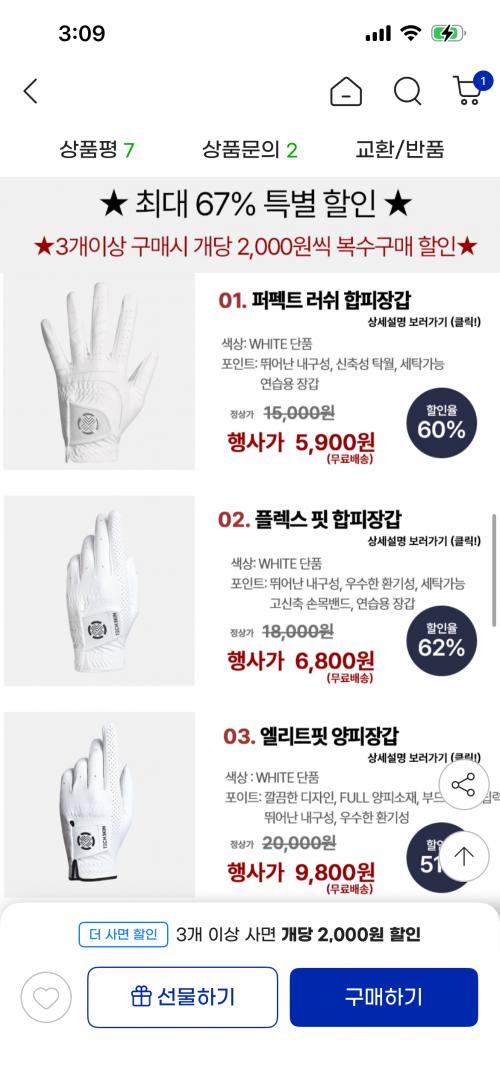골프장갑 종류 다양하게 최저가 할인중입니다!