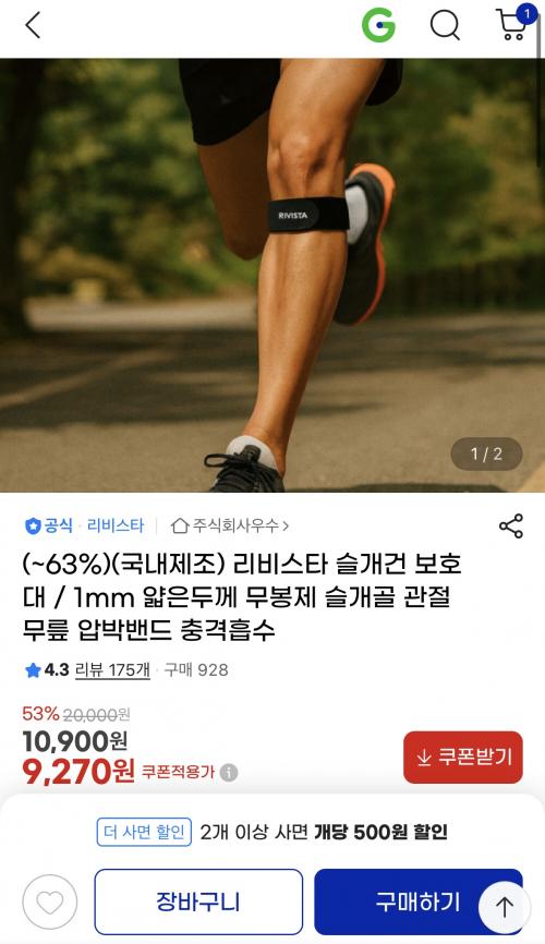 [지마켓] 리비스타 1mm 슬림 슬개건 보호대 (9,270원/무배) > 국내핫딜