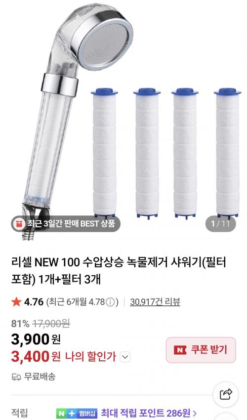 샤워기(필터포함) + 필터 3개 구성이라 가성비 괜찮습니다.