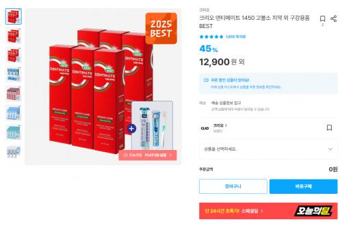 [오늘의 집] 크리오 덴티메이트 1450 고불소 치약 외 구강용품 (9,900원/무료)