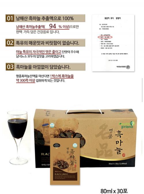 [옥션] 국산 흑마늘진액 80ml 30포 x 2박스 (20,870원/무료)