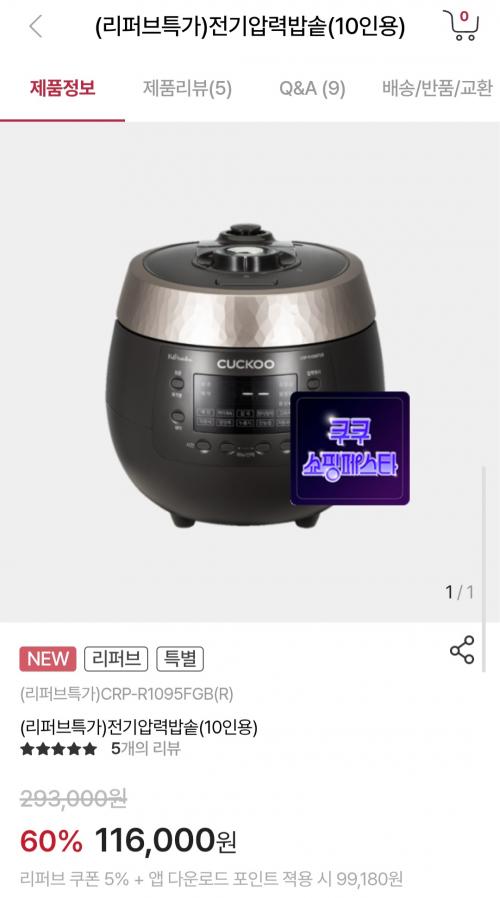 쿠쿠몰 전기압력밥솥 리퍼브원데이특가 떴네요