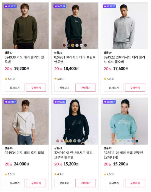 지오다노 F/W 클리어런스 행사로 기본 아이템 위주 구성입니다