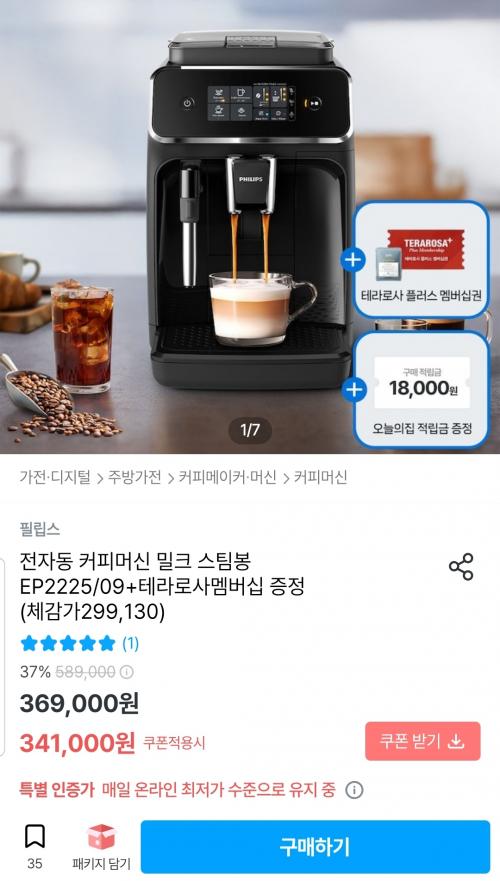 동급 전자동 머신들 보통 40만 정도인거 생각하면 가격 괜찮네요