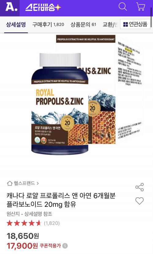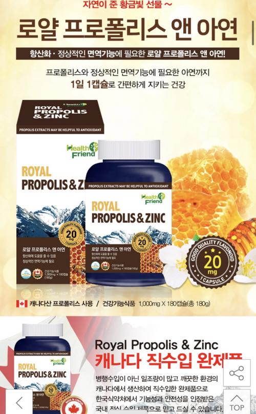 면역력&항산화 영양제 로얄 프로폴리스앤 아연 6개월분 (17,900원/무료) > 국내핫딜