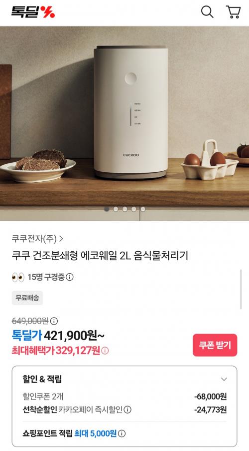 카카오 톡딜에서 쿠쿠 음처기 할인하네요