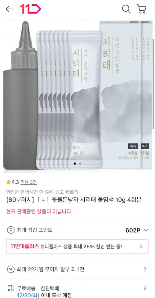 [11번가] 1+1 꽃을든남자 서리태 물염색 셀프 10g 4회분 (7,200원/무료) > 국내핫딜