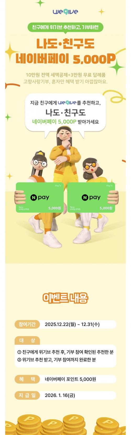 추가로 위기브 추천으로 진행하면 추천인과 추천받은사람 각각 네이버페이 5천원씩 들어와서 좋네요!