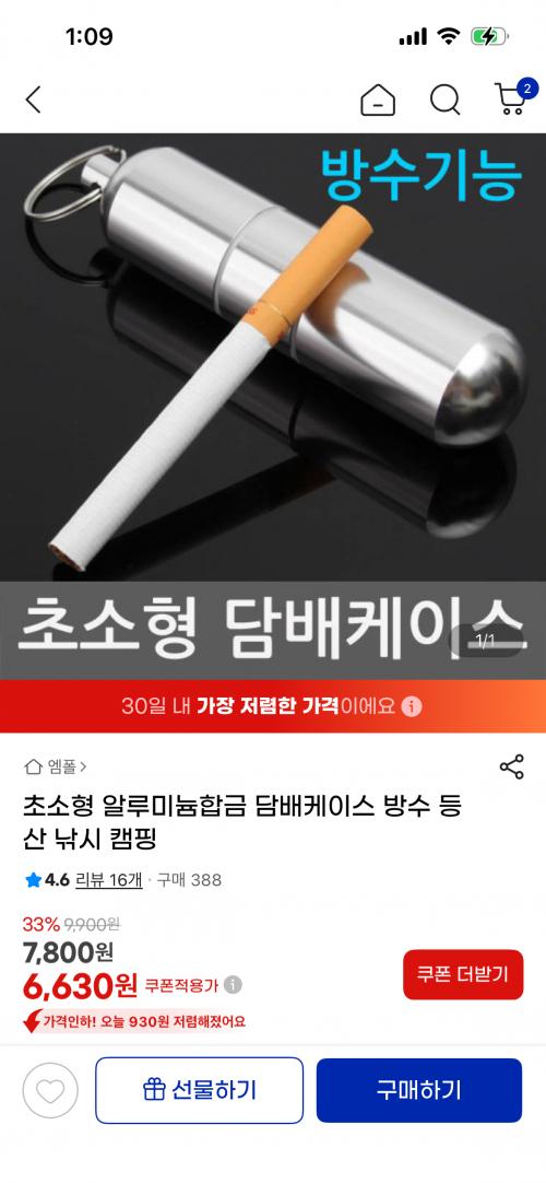 [g마켓] 초소형 알루미늄합금 담배케이스 (6,630원/배송비)