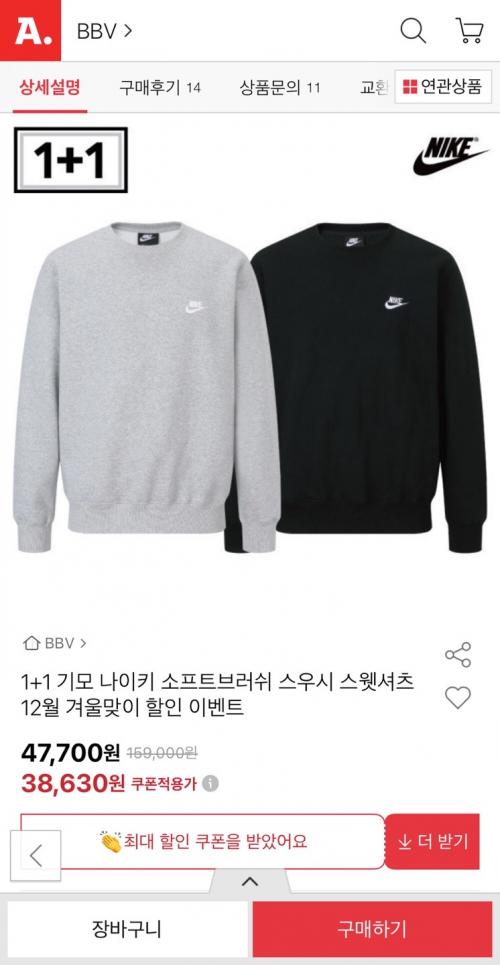 [옥션] 1+1 기모 나이키 소프트브러쉬 스우시 스웻셔츠 (38,630원/무배) > 국내핫딜