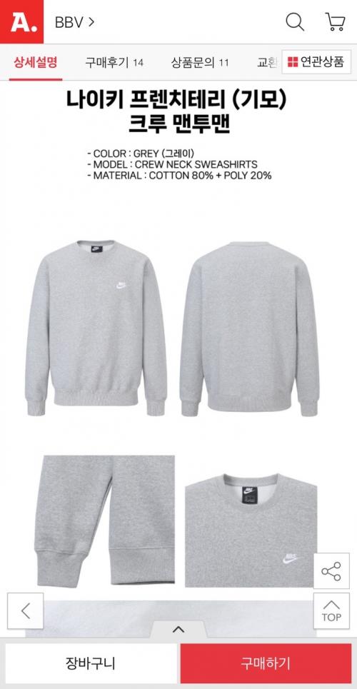 [옥션] 1+1 기모 나이키 소프트브러쉬 스우시 스웻셔츠 (38,630원/무배)