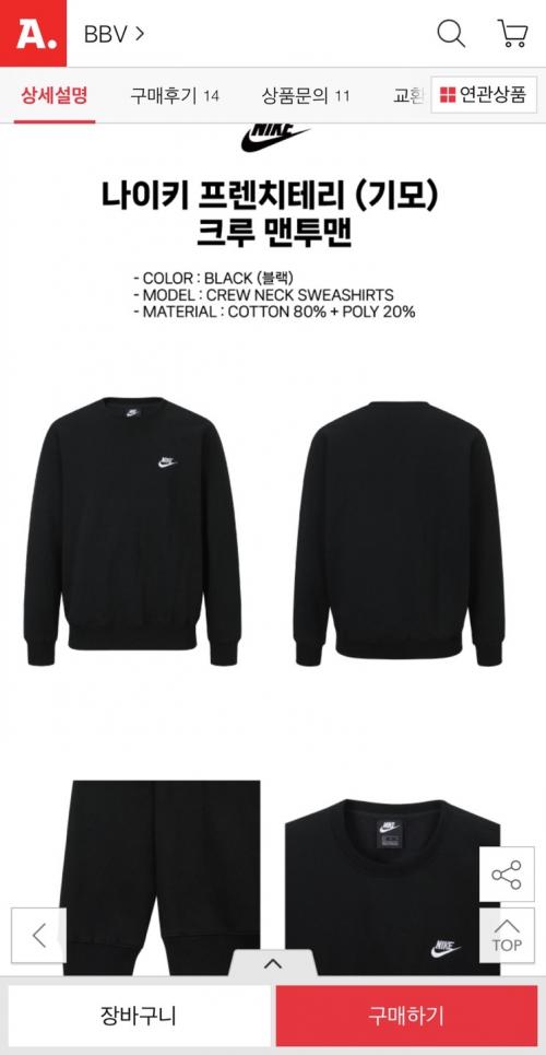 나이키 기본 기모 맨투맨 개당 1.9만원대 저렴합니다