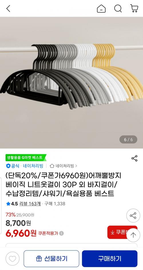 [G마켓] 어깨뿔방지 베이직 니트옷걸이 30P (6,960원/무료)