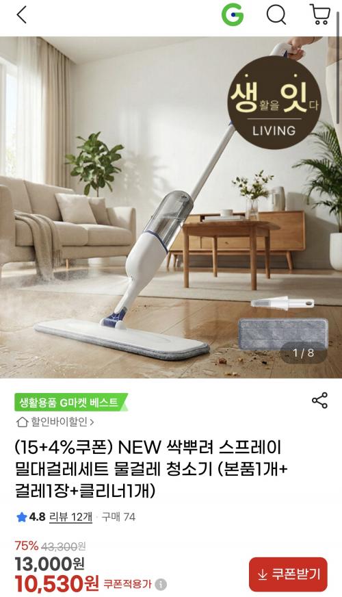 분사력 좋은 스프레이 밀대걸레세트 입니다