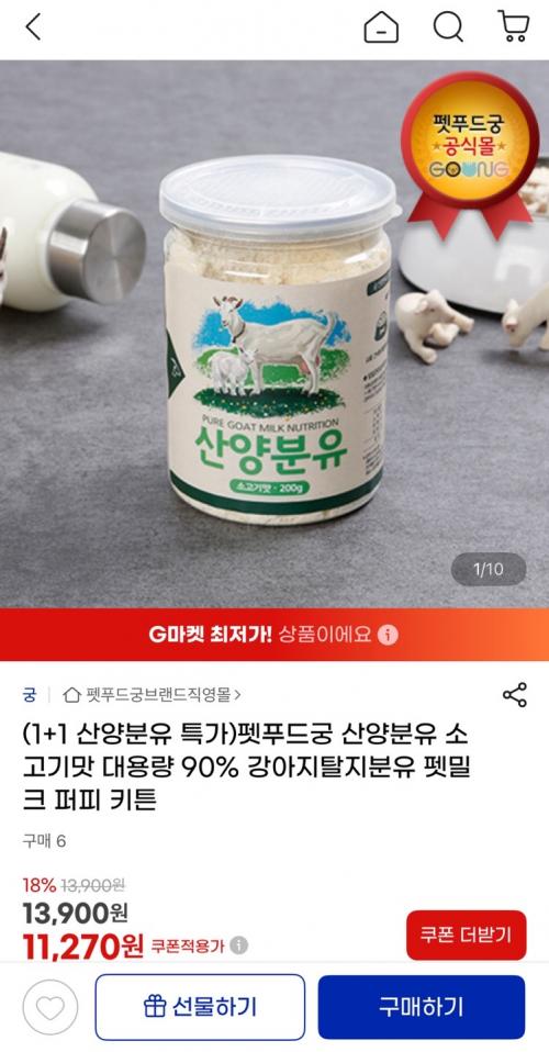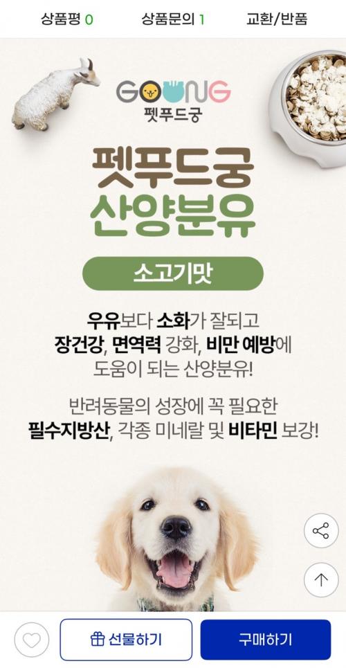 [지마켓] 펫푸드궁 강아지용 산양분유 소고기맛 200g 1+1 (11,270원/무배) > 국내핫딜