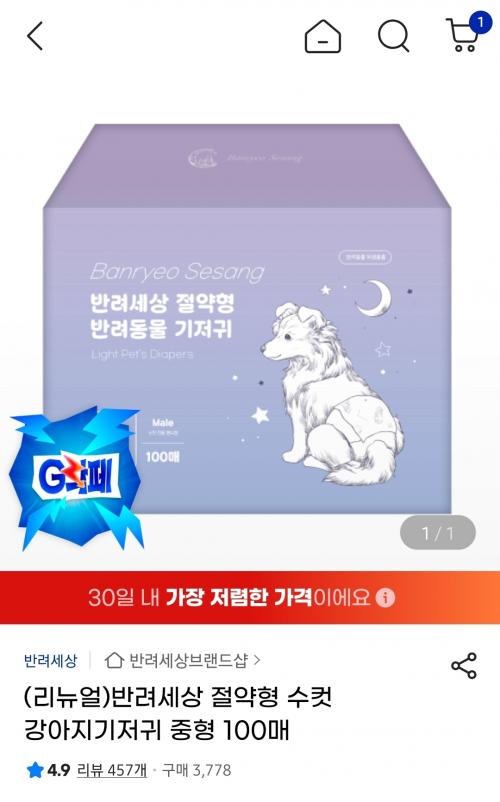 [지마켓] 절약형 수컷 강아지기저귀 중형 100매 (19380원/무료) > 국내핫딜