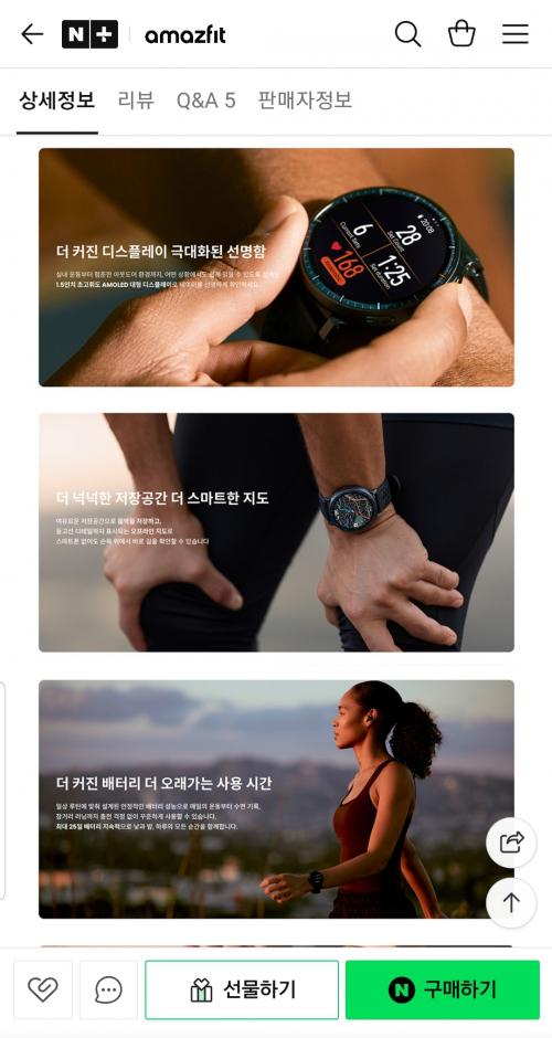 배터리 25일이라 충전스트레스 거의 없고 무게도 39.5g이라 손목이나 운동 중 부담도 없는 수준입니다.