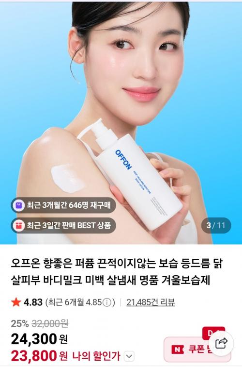 오프온 바디로션 네이버 단하루특가로 23,800원 무배입니다