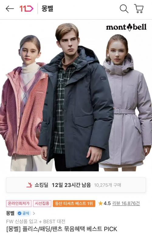 [11번가] 몽벨 플리스/패딩/팬츠 할인전 (18,420원~/무료) > 국내핫딜