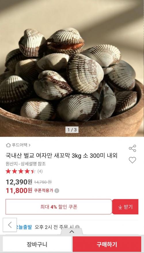 [옥션] 국내산 벌교 여자만 새꼬막 3kg 소 300미 내외 (11,800원 / 무료배송) > 국내핫딜