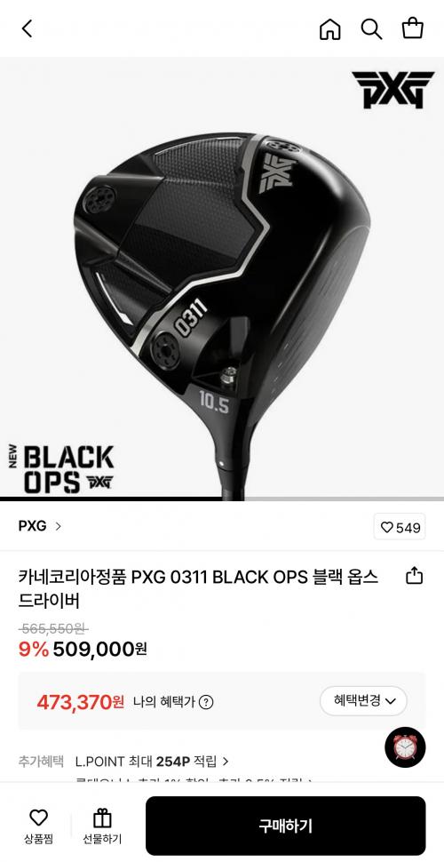 [롯데온] 카네코리아 정품 PXG 0311 블랙 옵스 드라이버 (473,370원/무료)