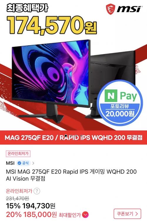 10만원대엔 FHD급밖에 못봤는데 QHD에다가 주사율도 200이네요 ㄷㄷ