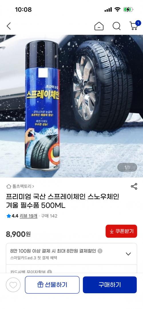 [지마켓]국산 스프레이 체인 스노우체인 눈오는날 필수품 (8,900/무료) > 국내핫딜
