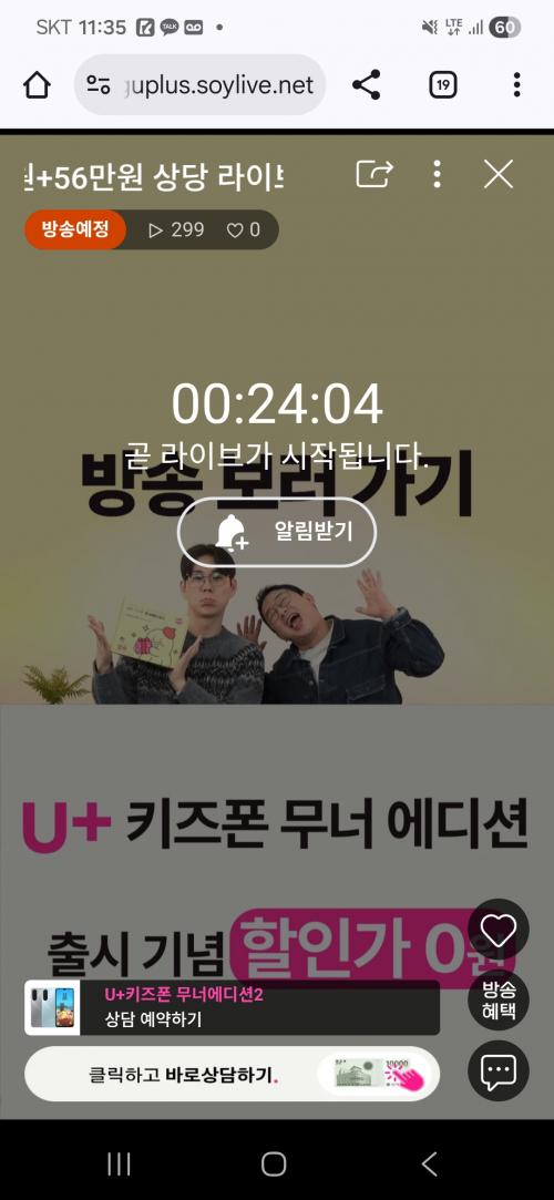선약도 가능하긴 한데 29요금제 이상 신규/기변 공시 받음 기기값 0원이에요~