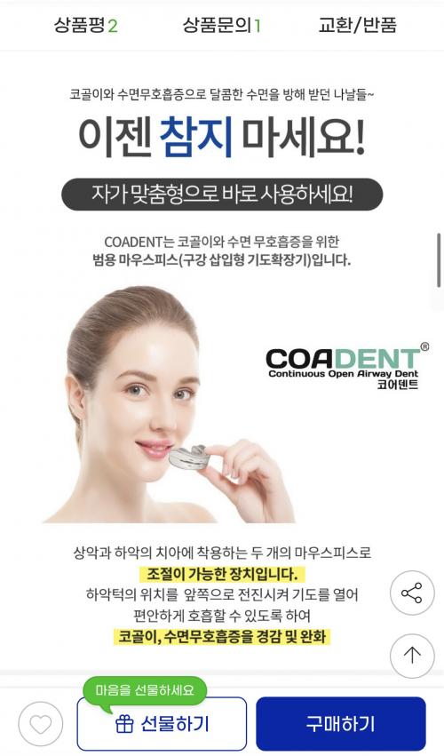 코골이 수면무호흡 경감 의료기기입니다.