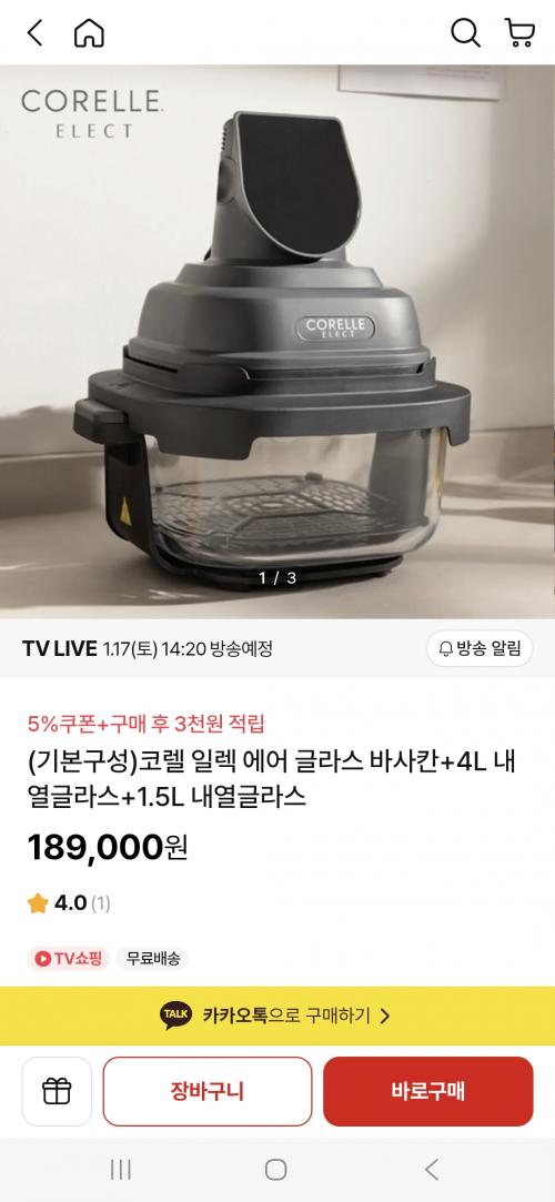 오후14시20분부터 코렐 에어프라이어 바사칸 홈쇼핑 할인행사하네요~