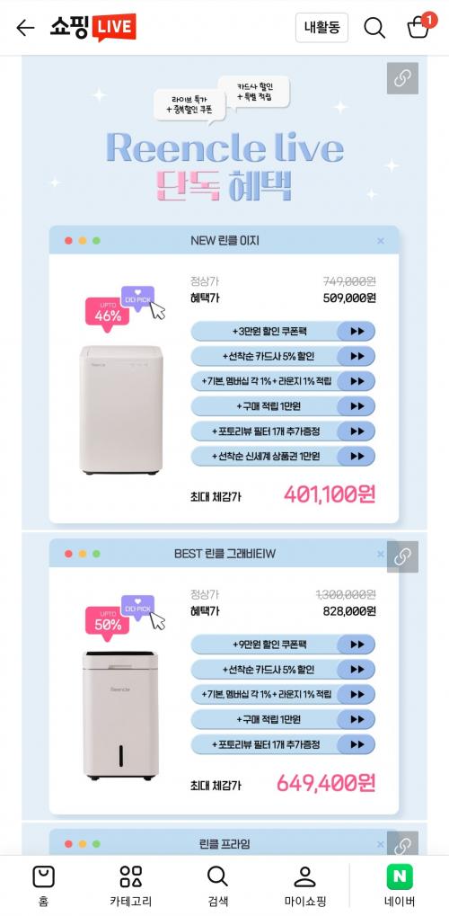 린클 이지 기준으로 적립+포토리뷰 상품권+필터 포함해서 처음으로 체감가 40만원까지 떨어졌네요