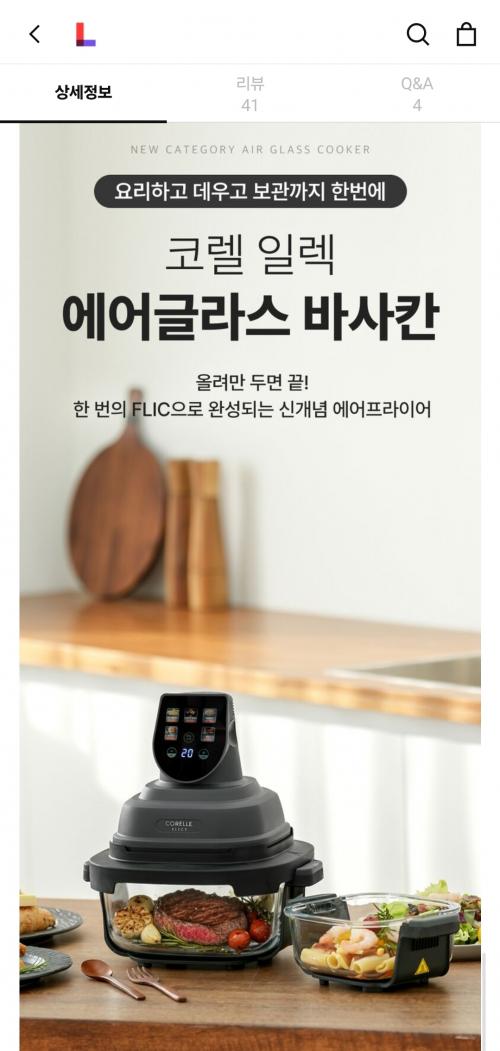 [롯데홈쇼핑] 코렐 일렉 에어글라스 바사칸 에어프라이어 (189,000원/무료) > 국내핫딜