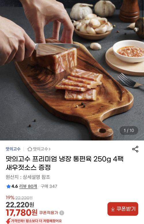 [지마켓] 국산 프리미엄 통편육 250g 4팩 (17,780원/무료) > 국내핫딜