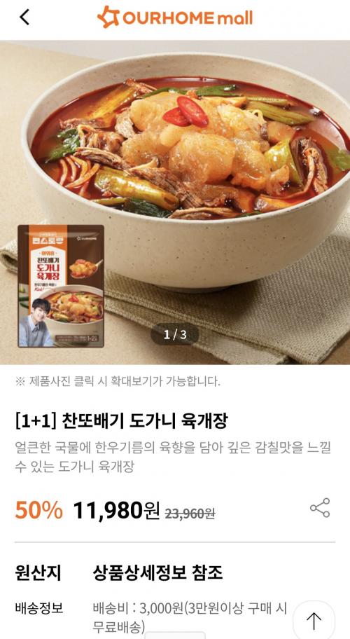 [아워홈몰] 찬또배기 도가니 육개장 1+1 (11,980원/3만이상무배) > 국내핫딜
