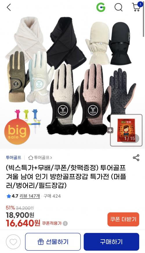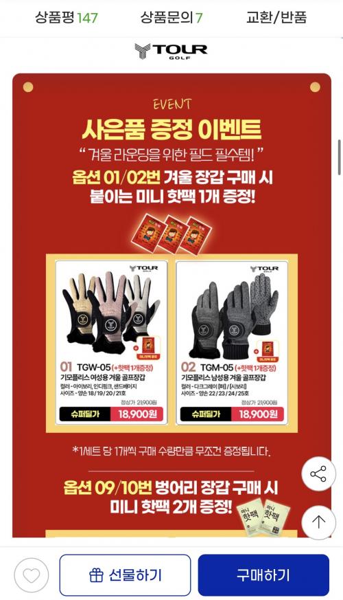 남녀 공용으로 착용 가능하고, 핫팩까지 증정해서 더 따뜻하게 플레이하실 수 있어요.