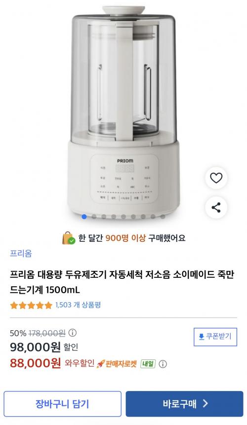 프리옴 두유제조기를 이유식용으로 사용하던분이 많던데 이김에 구매했네요