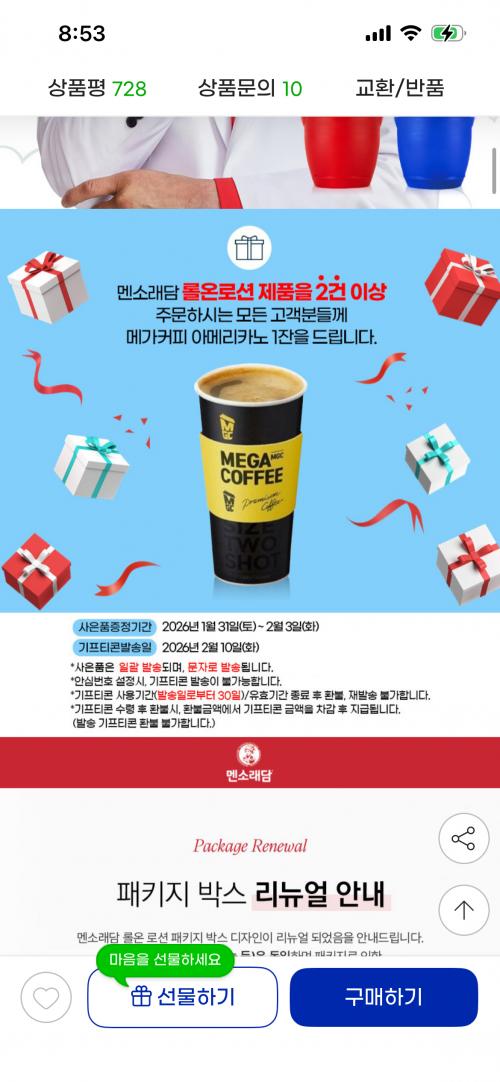 2세트 이상 구매하면 아메리카노 증정 있어요!