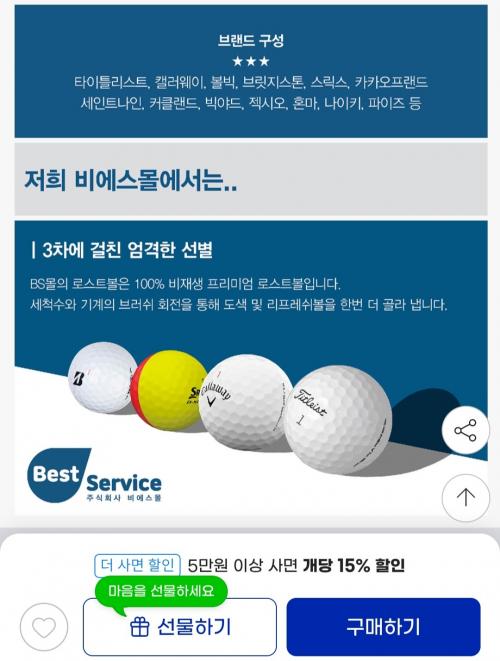5만원 이상 구매하면 개당 15% 할인 추가로 들어갑니다.