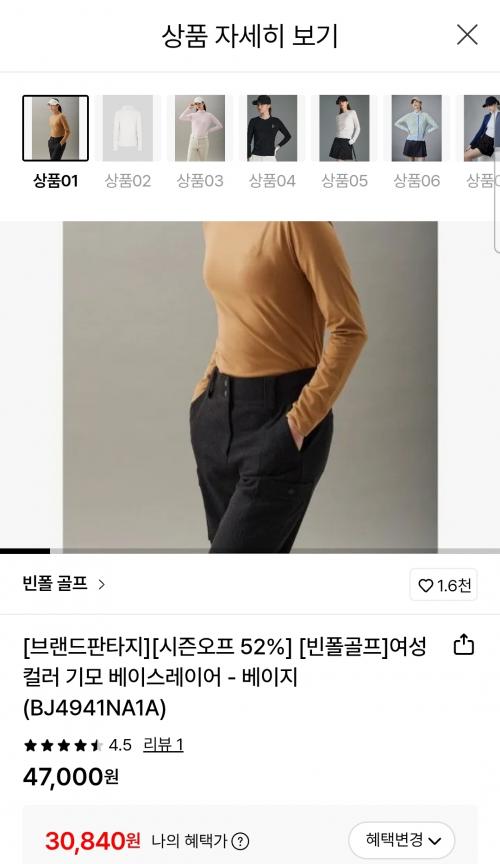 [롯데온] 빈폴 골프 기모 베이스레이어 (30,840원/무배)