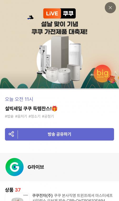 지마켓 라이브로 11시부터 밥솥 할인하네요