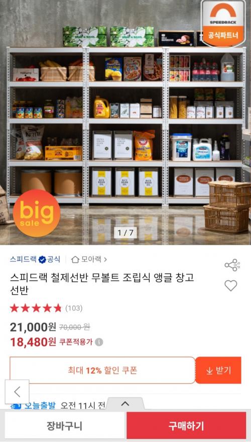 [옥션] 스피드랙 무볼트 조립식 철제선반 (18,480원 / 무료배송) > 국내핫딜