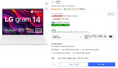 [쿠팡] 엘지 그램 14Z90S-GA5VK (1,298,000/무료)
