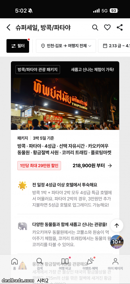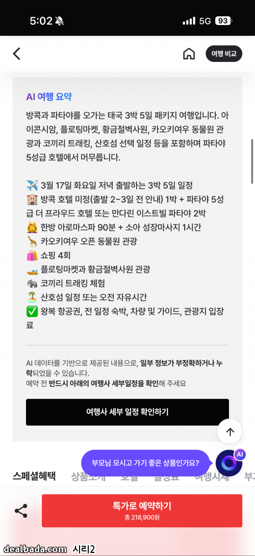 방콕 1박 + 파타야 2박하는 일정이고